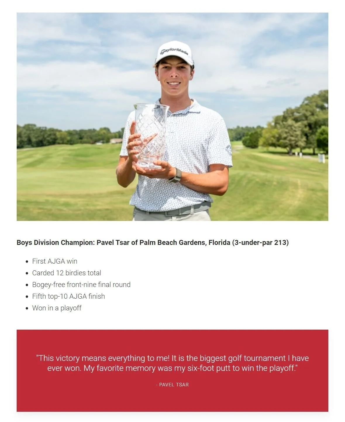 7/29/24 - AJGA Arnold Palmer Invitational, Orlando, FL - 70-70-71 - Winner - 7373